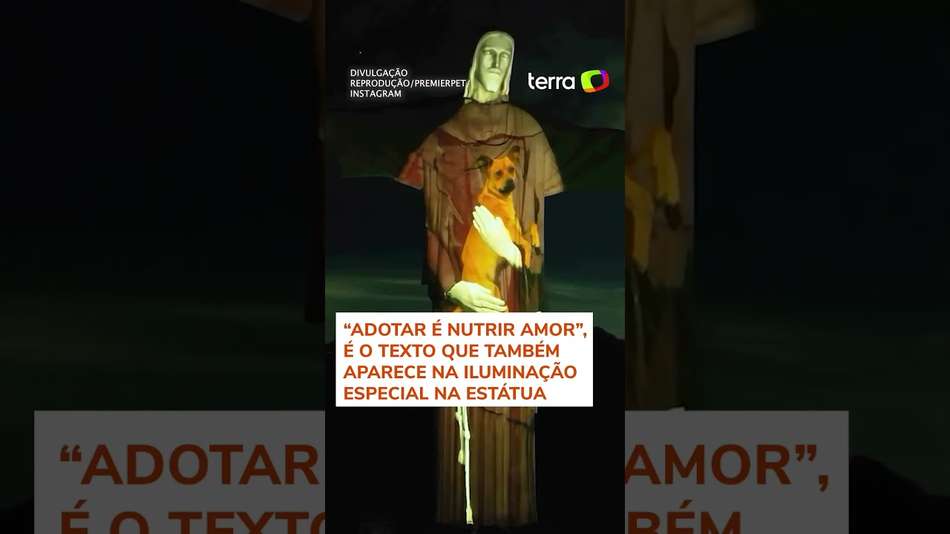 Cristo Redentor 'abraça' e 'carrega' cachorro caramelo em projeção por adoção responsável. A ação realizada nesta sexta-feira, 4, é em homenagem ao Dia Mundial dos Animais de Rua. Na projeção, o vira-lata caramelo, ícone da cultura popular brasileira, é acolhido pelo Cristo. "Adotar é nutrir amor", é o texto que também aparece na iluminação especial na estátua. Além da projeção, o Instituto PremieRpet disse que doará toneladas de alimentos a abrigos. #terranoticias Divulgação Reprodução/premierpet/Instagram