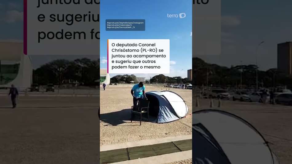 O deputado Hélio Lopes (PL-RJ) montou uma barraca na Praça dos Três Poderes nesta sexta-feira, 25, e colocou um esparadrapo na boca como forma de protesto contra as medidas judiciais impostas a Jair Bolsonaro. Em uma carta aberta divulgada nas redes sociais, Lopes afirmou que o Brasil "não é mais uma democracia" e que sua manifestação é um ato individual de indignação. Durante o protesto, o deputado permaneceu em silêncio, apontando para uma placa com trechos da Constituição e lendo trechos bíblicos, enquanto poucos apoiadores passavam pelo local. O deputado Coronel Chrisóstomo (PL-RO) foi o primeiro a se juntar a Lopes e sugeriu que outros acampamentos podem surgir na Praça dos Três Poderes. A Polícia Militar acionou a Secretaria de Estado de Proteção da Ordem Urbanística do Distrito Federal para avaliar a retirada do acampamento, já que a área é proibida para ocupações desde os ataques de 8 de janeiro de 2023. Créditos: Reprodução/depheliolopes/Instagram Reprodução/meioindep/X Reprodução/DennysDeeh_/X