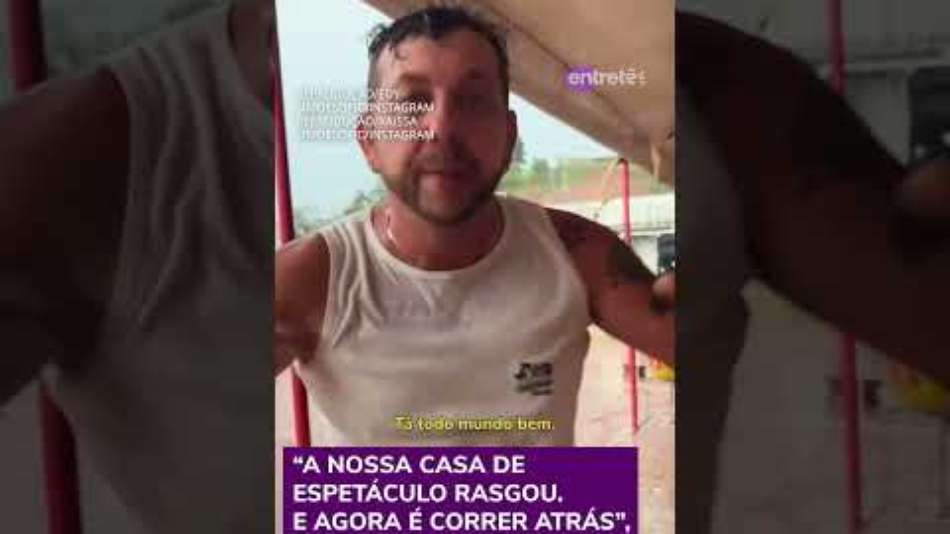 O palhaço mostrou o estrago causado pelas chuvas que atingiram Tocantins (MG) na última quinta-feira, 10, em suas redes sociais e falou sobre o ocorrido: "Destruição total". "A nossa casa de espetáculo rasgou. E agora é correr atrás para a gente conquistar uma casa nova, uma lona nova para voltar a trabalhar", afirmou o ex-participante de reality. Em outro vídeo, narrado por Raíssa, o grupo aparece juntando cadeiras de plástico, enquanto a ex-sister afirma que a lona não tem concerto. Reprodução/edysimoesofic/Instagram Reprodução/raissasimoesofic/Instagram #terranoticias