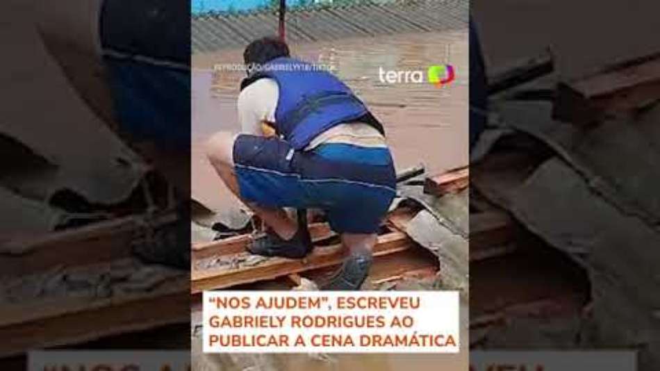 Homem quebra telhado de casa para resgatar cachorro ilhado em enchente no RS. A cena foi divulgada nesta terça-feira, 7, em meio à tragédia climática no Estado. Segundo a autora do post, o resgate ocorreu na cidade de Novo Hamburgo. "Nos ajudem", escreveu Gabriely Rodrigues ao publicar a cena dramática. Mais de 3 mil animais já foram resgatados das enchentes no Rio Grande do Sul. #terranoticias Reprodução/gabrielyy18/TikTok