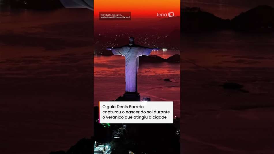O Rio de Janeiro continua lindo! O guia Denis Barreto capturou, com a ajuda de um drone, imagens das primeiras luzes do dia refletindo no Cristo Redentor. O registro de tirar o fôlego foi feito no dia 23 de agosto, enquanto a região passava por um veranico, a onda de calor em pleno inverno. As imagens do céu pintado em tons alaranjados encantou internautas e viralizaram: "Coração fica quentinho". #TerraVídeos @arraialdocabo360graus (ig) | @myhoodbr