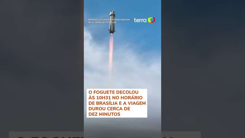 A Blue Origin lançou, nesta segunda-feira, 14, a nave New Shephard com seis mulheres a bordo. O foguete decolou às 10h31 no horário de Brasília e a viagem durou cerca de dez minutos. Após o pouso, Katy Perry deixou a cápsula e beijou o chão, empolgada com a viagem. O voo suborbital passou da Linha de Kármán, a 100 km da Terra, considerada o 'início do espaço'. Reprodução/New Shepard Mission NS-31 Webcast/Youtube