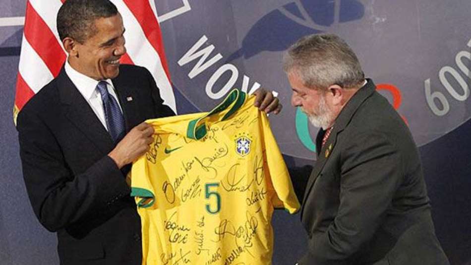 Brasil Lula dá camisa da seleção autografada a Obama Exibir comentários Compartilhar Líderes estão na Itália para a cúpula do G8 e do G5 e se encontraram em momento descontraído CNN Publicidade