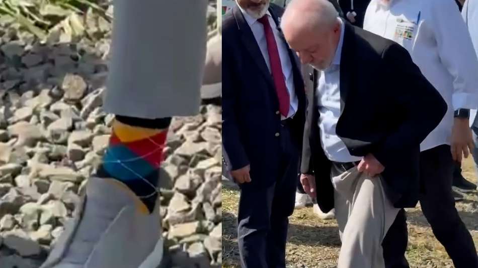 Lula alfineta Bolsonaro: ‘Tem gente que tem tornozeleira, eu tenho meia bonita’. O vídeo do presidente foi publicado nas redes sociais do Partido dos Trabalhadores na última quinta-feira, 21. No registro, Lula mostra durante evento uma meia colorida e ironiza Bolsonaro, que usa tornozeleira eletrônica por imposição do STF. Reprodução/@ptbrasil/Instagram