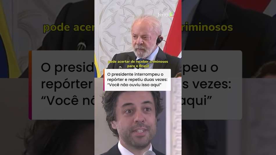 O presidente participou de coletiva em Nova Deli, neste domingo, 22, em agenda com lideranças indianas. Durante a entrevista, rebateu pergunta sobre suposta fala de que "receberia" brasileiros que cometeram crimes nos EUA. O presidente interrompeu o repórter e repetiu duas vezes: "Você não ouviu isso aqui". #terranoticiasshorts Reprodução/Canal Gov/Youtube