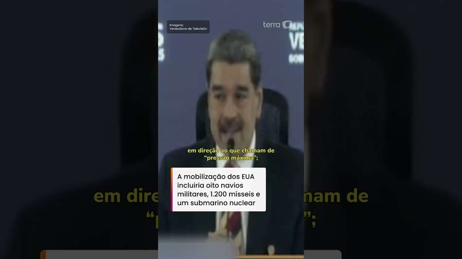 Maduro denúncia que oito navios militares dos EUA 'apontam' para a Venezuela: 'Ameaça criminosa'. O líder venezuelano deu uma coletiva de imprensa nesta segunda-feira, 1º, onde tratou como uma ameaça iminente uma ação militar do governo Trump contra o país. "A Venezuela enfrenta a maior ameaça que nosso continente viu nos últimos 100 anos, uma ameaça injustificável, imoral e absolutamente criminosa", disse Nicolás Maduro. Segundo ele, a mobilização militar dos Estados Unidos no mar do Caribe inclui oito navios militares, que estariam com 1.200 mísseis, além de um submarino nuclear. Maduro afirmou que a Venezuela está em "máxima preparação" para se defender; ele também disse que os 8 milhões de habitantes estão alistados nas forças armadas. O líder venezuelano ainda mandou um recado a Trump dizendo que os secretário de Estado, Marco Rubio, quer manchar as mãos do presidente de sangue sul-americano. #terranoticiasshorts #shorts Imagens: Venezolana de Televisión
