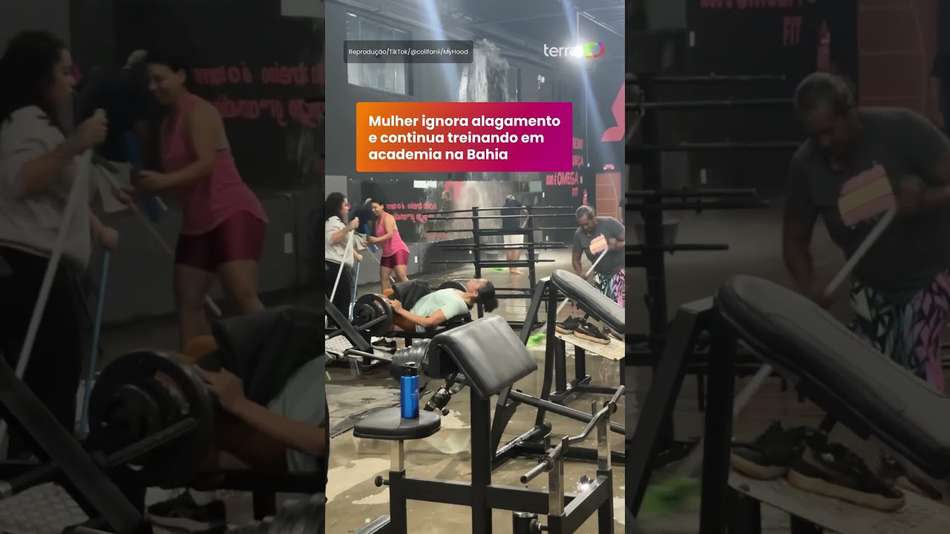 Mulher ignora alagamento e continua treinando em academia na Bahia #shorts