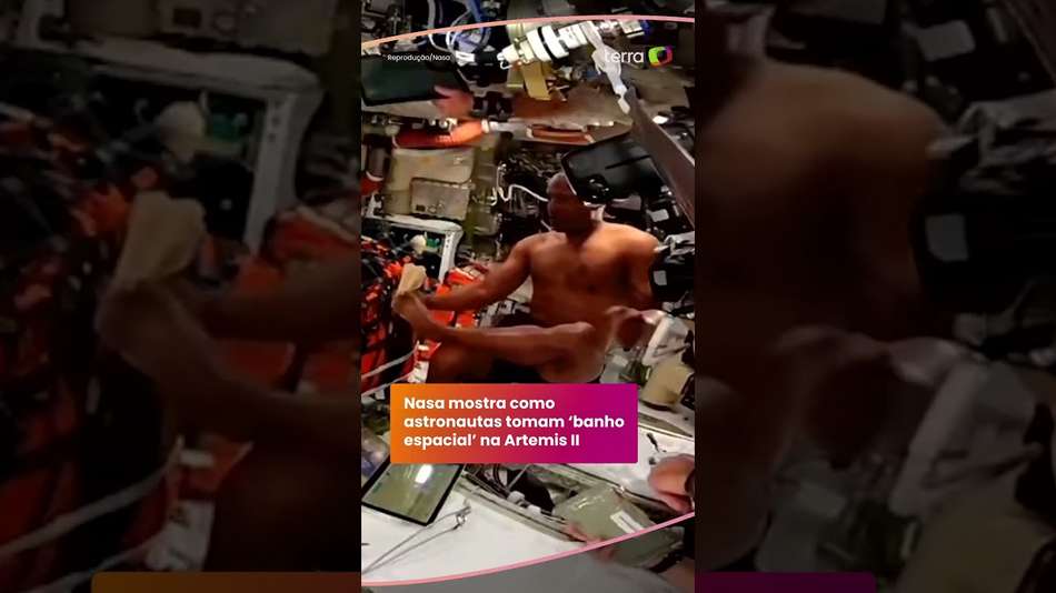 Victor Glover, piloto da missão, aparece se higienizando com toalhas umedecidas. Os astronautas também podem usar shampoo sem enxágue e sabonete sem água. #terranoticiasshorts Reprodução/Nasa