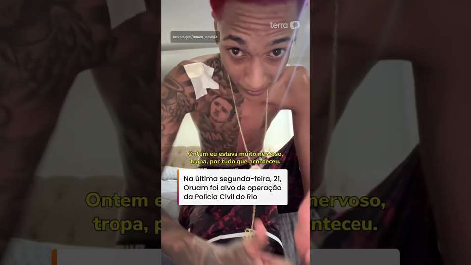 A publicação foi feita nesta terça-feira, 22, após Justiça pedir a prisão temporária do artista. 'Vou me entregar, para provar para vocês que eu não sou bandido', disse aos seguidores. Na última segunda-feira, 21, Oruam foi alvo de operação da Polícia Civil do Rio. O rapper foi indiciado por tráfico de drogas, associação ao tráfico, desacato e outros quatro crimes. #terranoticias Reprodução/@mauro_davi6/X
