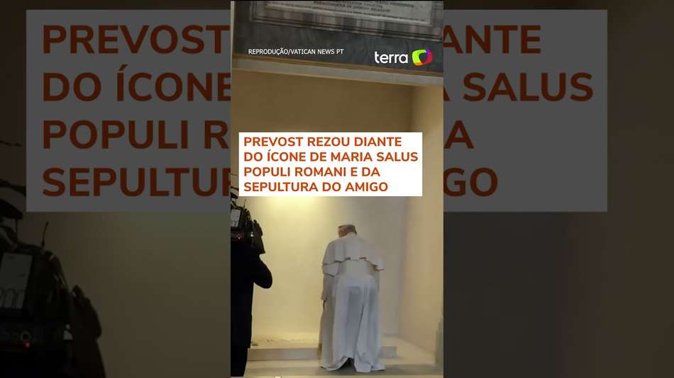 O pontífice orou, de forma privada, no túmulo de seu antecessor Francisco, localizado na Basílica de Santa Maria Maggiore. Prevost rezou diante do ícone de Maria Salus Populi Romani e da sepultura de Jorge Bergoglio, onde depositou uma rosa branca. A oração durou cerca de 30 minutos. Papa Leão XIV e Francisco eram amigos próximos. A basílica foi uma escolha pessoal de Francisco, que tinha grande admiração pela Virgem Maria e frequentava bastante o local. #terranoticias Reprodução/Vatican Media