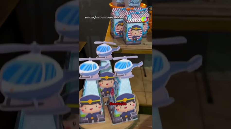 João Miguel foi surpreendido em sua festa de 3 anos com a temática policial. Segundo a irmã mais velha, a influenciadora Vanderleia Marques, o pequeno é apaixonado pela polícia. Por isso, PMs de Governador Valadares (MG) compareceram à comemoração fardados. Para completar a alegria do aniversariante, os policias posaram para registrar o momento especial. #shorts Reprodução/vanderleiamp/Instagram