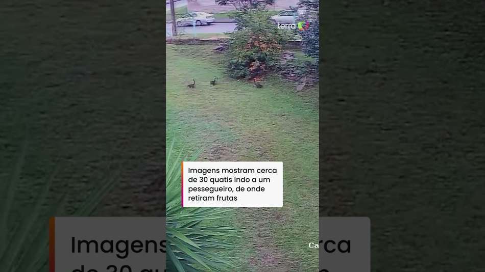 O caso foi registrado na terça (17), na sede do 3º Batalhão de Polícia Ambiental, em Passo Fundo. Imagens mostram cerca de 30 quatis indo a um pessegueiro, de onde retiram frutas. Segundo o batalhão, os animais vivem em uma área de preservação permanente ao lado da unidade. #terravideos #terranoticiasshorts Reprodução/@ambientalbmrs/Instagram/MyHood