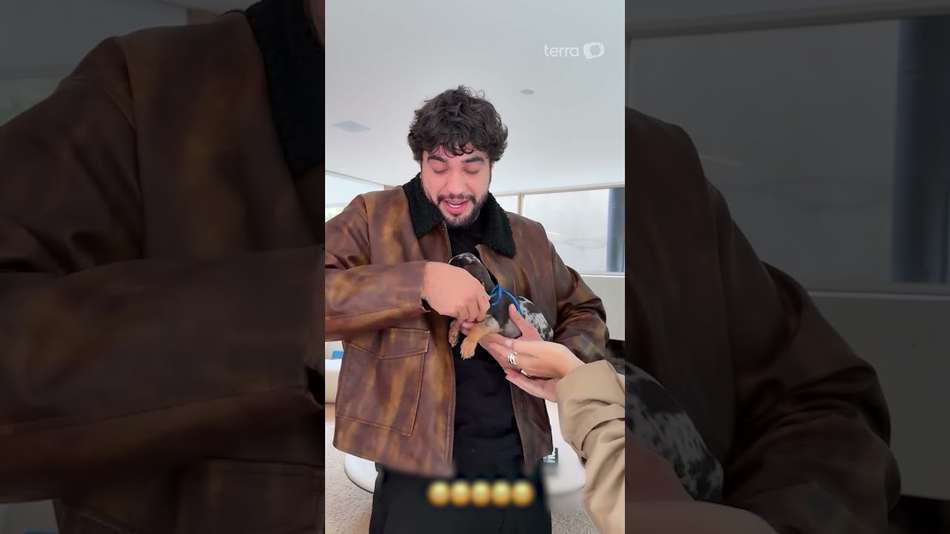 Na última segunda-feira, 4, a influenciadora presenteou o namorado com um cachorro da raça dachshund. "O sonho dele é ter esse cachorro! Ele fala mil vezes", contou ela, em uma rede social. "Meu Deus, é muito lindo", afirmou o cantor, que escolheu batizar o animal com o nome de Ervilha. O casal está junto desde dezembro de 2024 e estão esperando a primeira filha. Reprodução/Instagram/rafakalimann #terranoticias