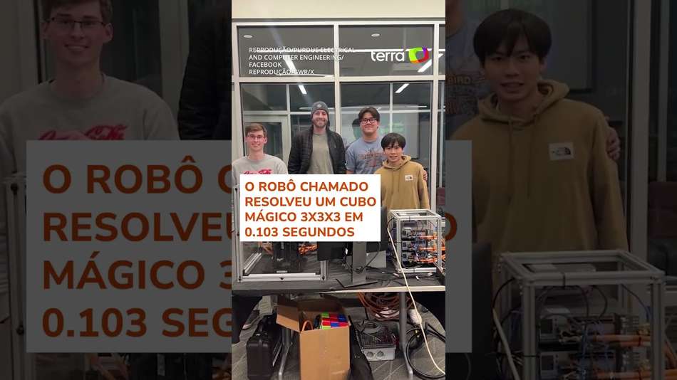 O feito foi realizado por um grupo de estudantes de uma escola americana de computação. O robô chamado resolveu um cubo mágico 3x3x3 em 0.103 segundos. O recorde anterior de um robô era quase três vezes maior, 0,305 segundos. Reprodução/Purdue Electrical and Computer Engineering/Facebook Reprodução/GWR/X #terranoticias