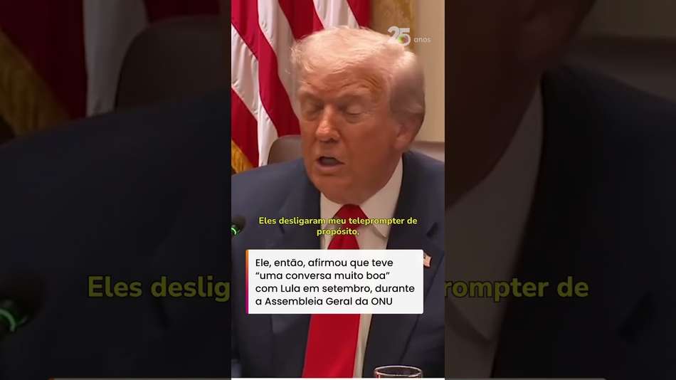 O momento aconteceu durante coletiva de imprensa nesta terça-feira, 14, na Casa Branca. Ao lado do presidente da Argentina, Donald Trump respondeu uma pergunta sobre negócios com países da América do Sul. Ele, então, afirmou que teve "uma conversa muito boa" com Lula em setembro, durante a Assembleia Geral da ONU. O presidente dos Estados Unidos também voltou a reclamar do funcionamento do teleprompter durante seu discurso. #terranoticiasshorts Reprodução/The White House/Youtube