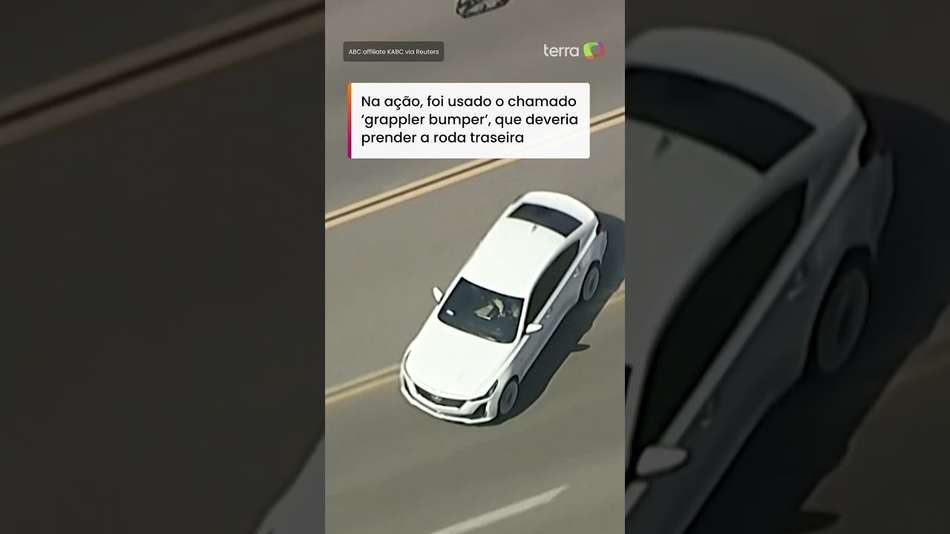 Vídeo mostra ação da polícia para interceptar carro em fuga nos EUA; motorista morreu. As imagens foram registradas ao vivo por uma emissora na quarta-feira, 8, na Califórnia. O motorista era procurado por roubo qualificado e estava há mais de uma hora em fuga. Na ação, foi usado o chamado 'grappler bumper', que deveria prender a roda traseira. Porém, em vez de segurar o veículo, o dispositivo fez o fugitivo perder o controle. Na sequência, o carro bateu de forma violenta em um muro, causando a morte do motorista. #terranoticiasshorts ABC affiliate KABC via Reuters