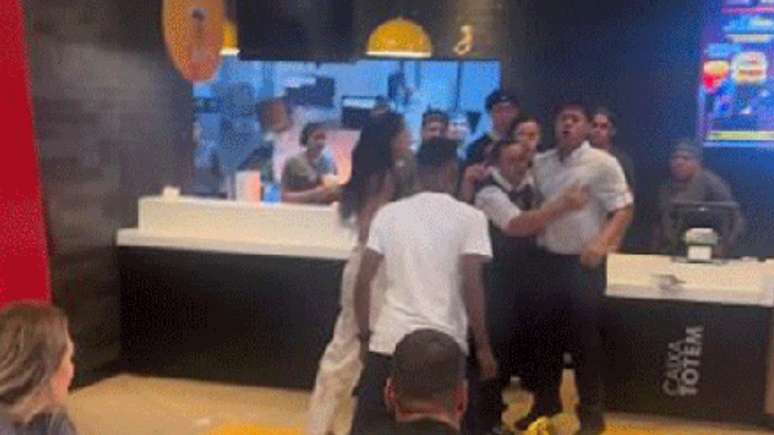 Registros em vídeo feitos por testemunhas e compartilhados em redes sociais detalham o conflito. Nas imagens, observa-se a discussão entre dois funcionários da lanchonete e um casal que estava acompanhado de uma criança. Durante o tumulto, a cliente arremessa um produto contra um dos empregados. Em resposta, uma funcionária lança uma embalagem na direção do homem que acompanhava a mulher.