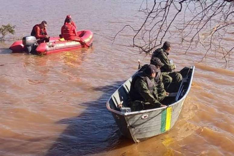 Bombeiros de Santa Rosa, Giruá e mergulhadores de Passo Fundo estão empenhados na operação, que conta também com apoio da Marinha do Brasil.