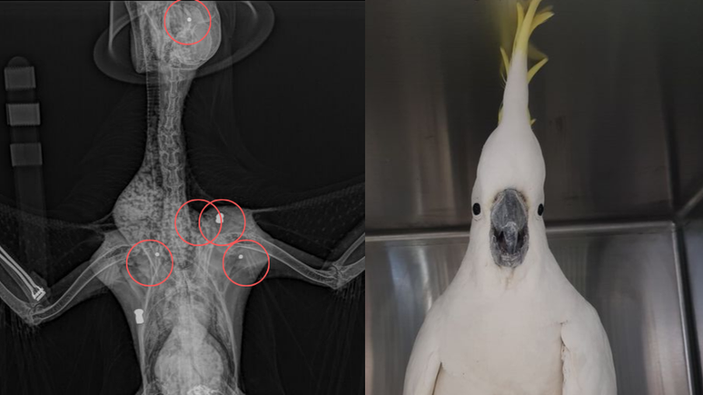 Uma cacatua está em recuperação na Austrália após tomar cinco tiros de uma pistola de ar comprimido. O animal, chamado Mr. Cocky, foi encontrado por um morador da cidade de Sydney, no mês passado, e levado para o Hospital para Aves, Répteis e Animais de Estimação Exóticos.