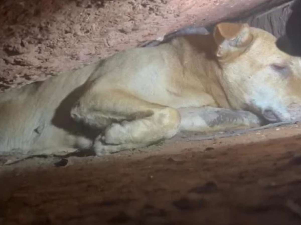 O resgate foi acionado por uma moradora que ouviu os gemidos do animal por volta das 15h. Os bombeiros enfrentaram dificuldades devido à instabilidade das pedras, sendo necessário estabilizar e erguer blocos rochosos para garantir segurança durante a operação.