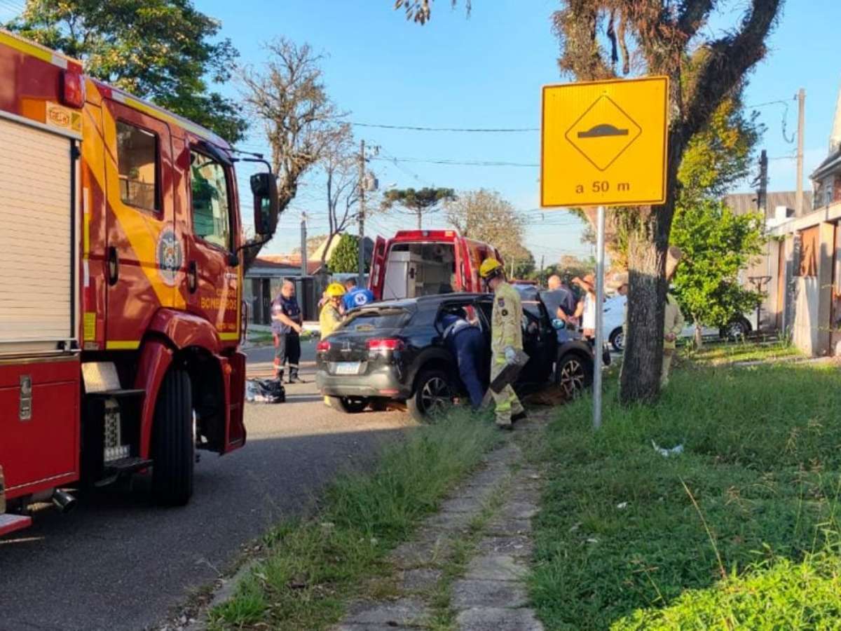 O acidente aconteceu na Rua Pedro Demeterco, próximo ao cruzamento com a Rua Coronel Joaquim Lacerda.