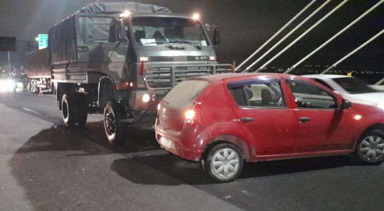 Caminhão do Exército causa acidente na ponte estaiada em Porto Alegre