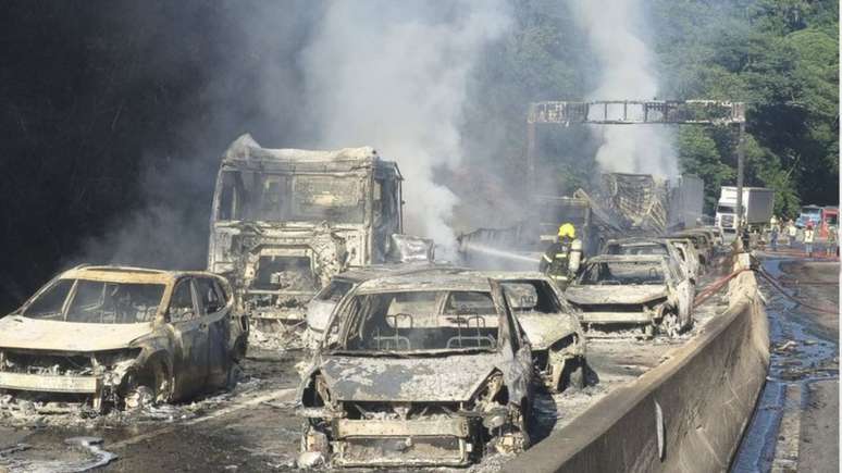 O acidente resultou em um cenário caótico, com mais de 20 veículos e quatro carretas atingidos pelas chamas. A Polícia Rodoviária Federal (PRF) esteve no local para controlar a situação e auxiliar no resgate das vítimas. O trânsito foi interrompido para a remoção da carga e limpeza da pista, sendo liberado apenas na manhã seguinte.