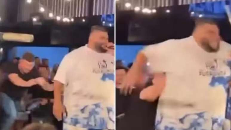 Artista foi surpreendido por um homem durante a apresentação; agressor foi contido por seguranças, e ocorrência será registrada formalmente