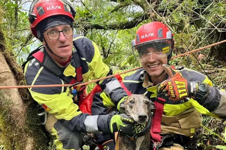 Um cão de caça da raça galgo, chamado Cabeça, foi resgatado após cair cerca de 130 metros em um cânion no Parque Nacional da Serra Geral, em Cambará do Sul (RS). O resgate, realizado na segunda-feira (10 de março) por bombeiros de Canela e Cambará do Sul, foi possível graças ao GPS preso à guia do animal, permitindo a localização exata do ponto onde ele estava.