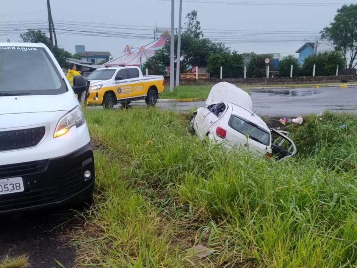Capotamento na RS-030 deixa um morto e dois feridos na entrada de Osório