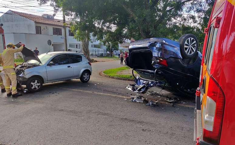 Carro capota após colisão no Tarumã, mas motoristas saem ilesas: 'Na hora de frear ela acabou acelerando' foi publicado primeiro em Banda B.
