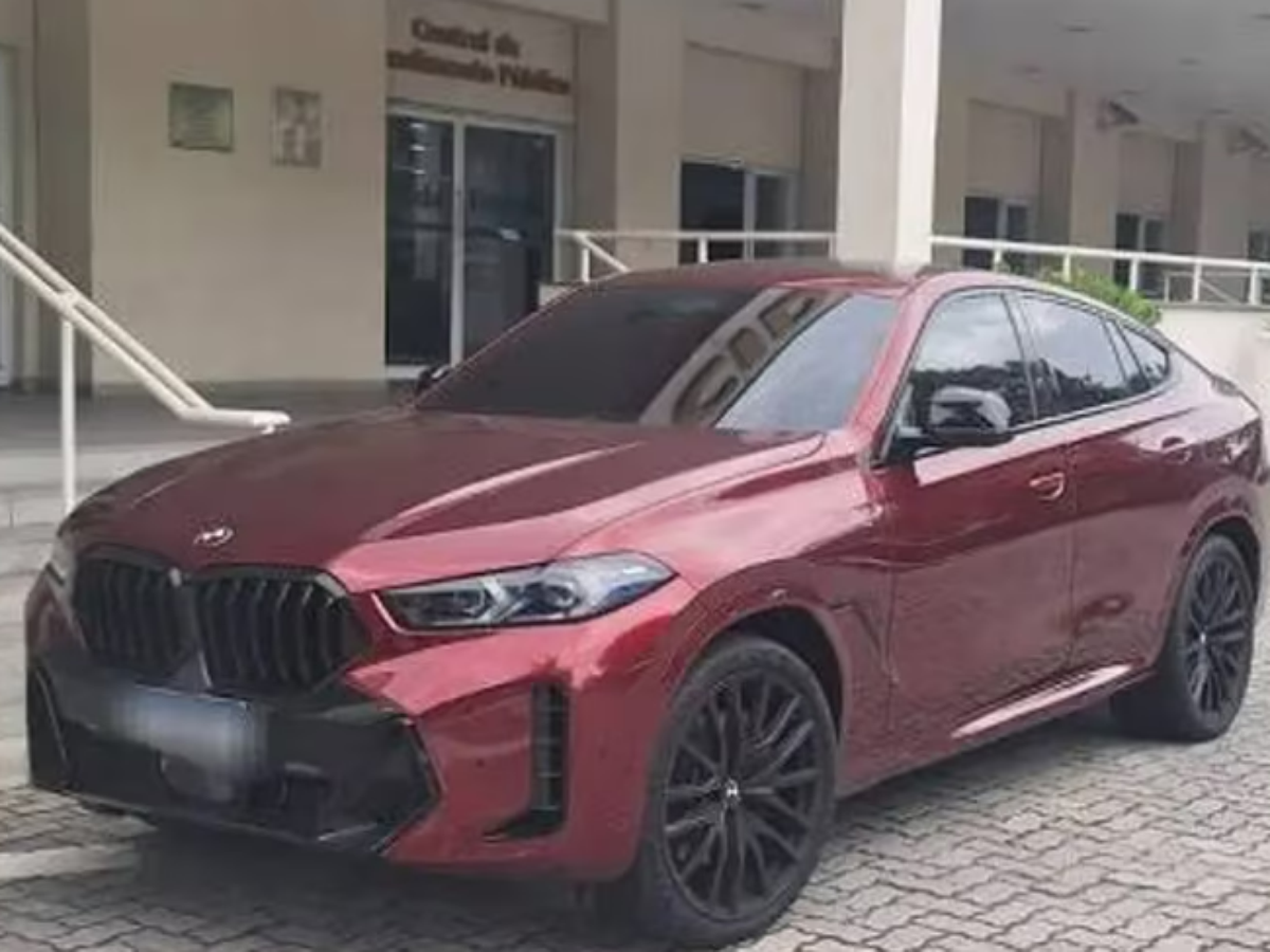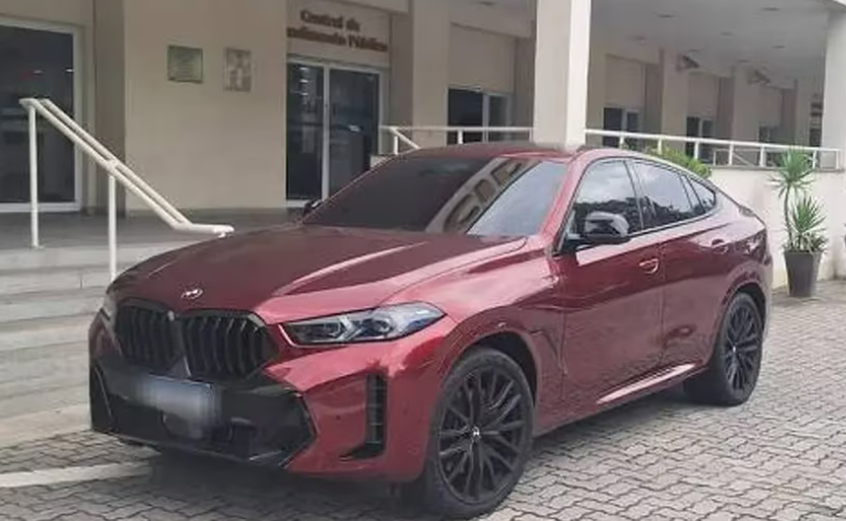 A BMW X6, avaliada em mais de R$ 1 milhão, foi levada à Cidade da Polícia sob suspeita de infração administrativa. Originalmente, a documentação aponta como preta a cor do veículo, mas ele se encontra atualmente na cor vermelha.
