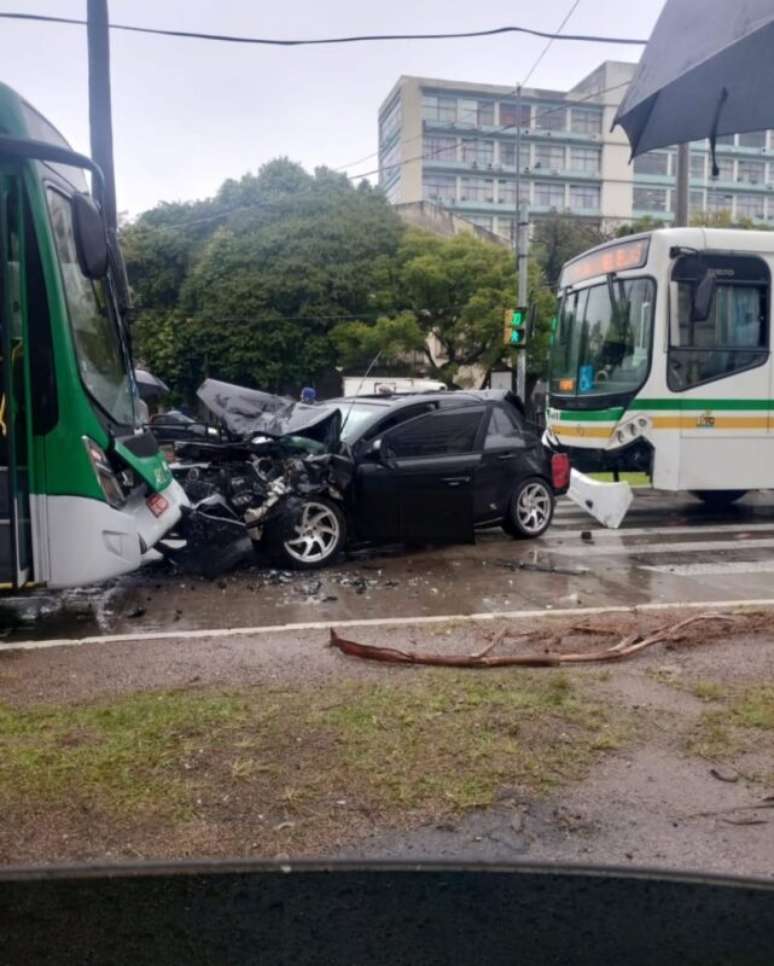 De acordo com informações da Brigada Militar, o condutor do automóvel trafegava pela avenida Paulo Gama no sentido centro-bairro e tentou acessar a BR-290 realizando uma manobra irregular. Durante a tentativa, invadiu o corredor de ônibus e colidiu contra um coletivo que estava parado. Logo em seguida, outro ônibus, que seguia no mesmo sentido, acabou atingindo a traseira do veículo.