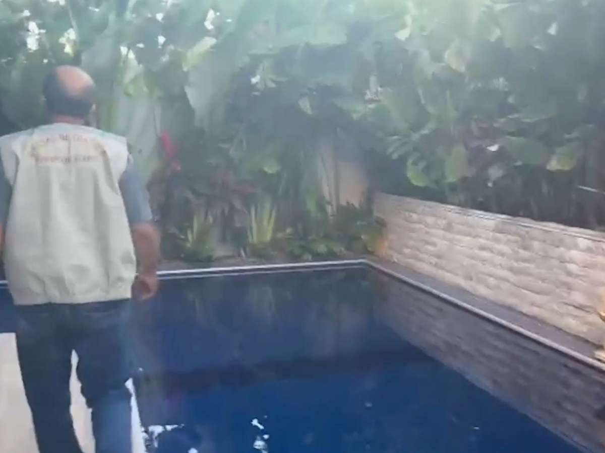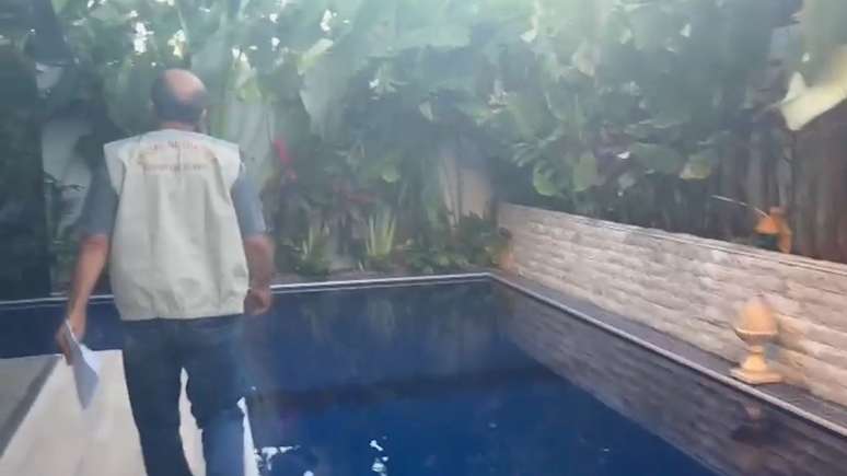 Durante a operação, imagens gravadas mostram sacolas acumuladas perto de uma entrada lateral da casa, além de bicicletas infantis, um ventilador e o som contínuo de uma máquina de lavar. Ao menos três portas internas estavam fechadas, incluindo a que dá acesso à área da piscina.