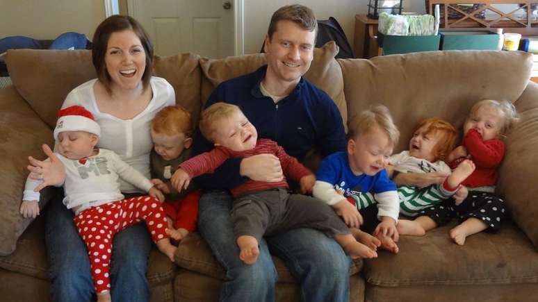 Casal descreve o 'caos controlado' de criar sêxtuplos