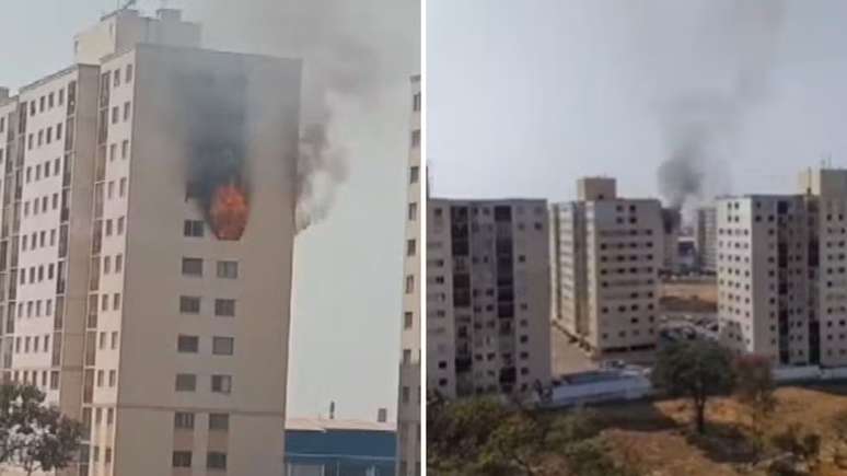 As chamas atingiram o sétimo andar do prédio residencial, segundo o Corpo de Bombeiros; imagens mostram fumaça e fogo no local