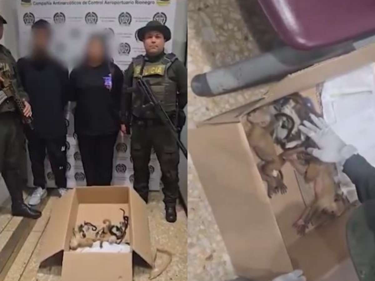#HCHInternacionales | Una pareja de extranjeros terminó detenida en el Aeropuerto Internacional José María Córdova, de Medellín (Colombia), por presuntamente sedar y ocultar en sus partes íntimas a seis primates recién nacidos con el fin de traficar ilegalmente con ellos hasta… pic.twitter.com/N0EXxpNMJ8