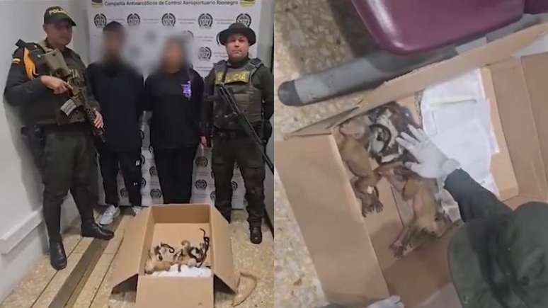 Casal é detido ao tentar embarcar em avião com seis filhotes de macacos; animais estavam sedados e escondidos em roupas íntimas