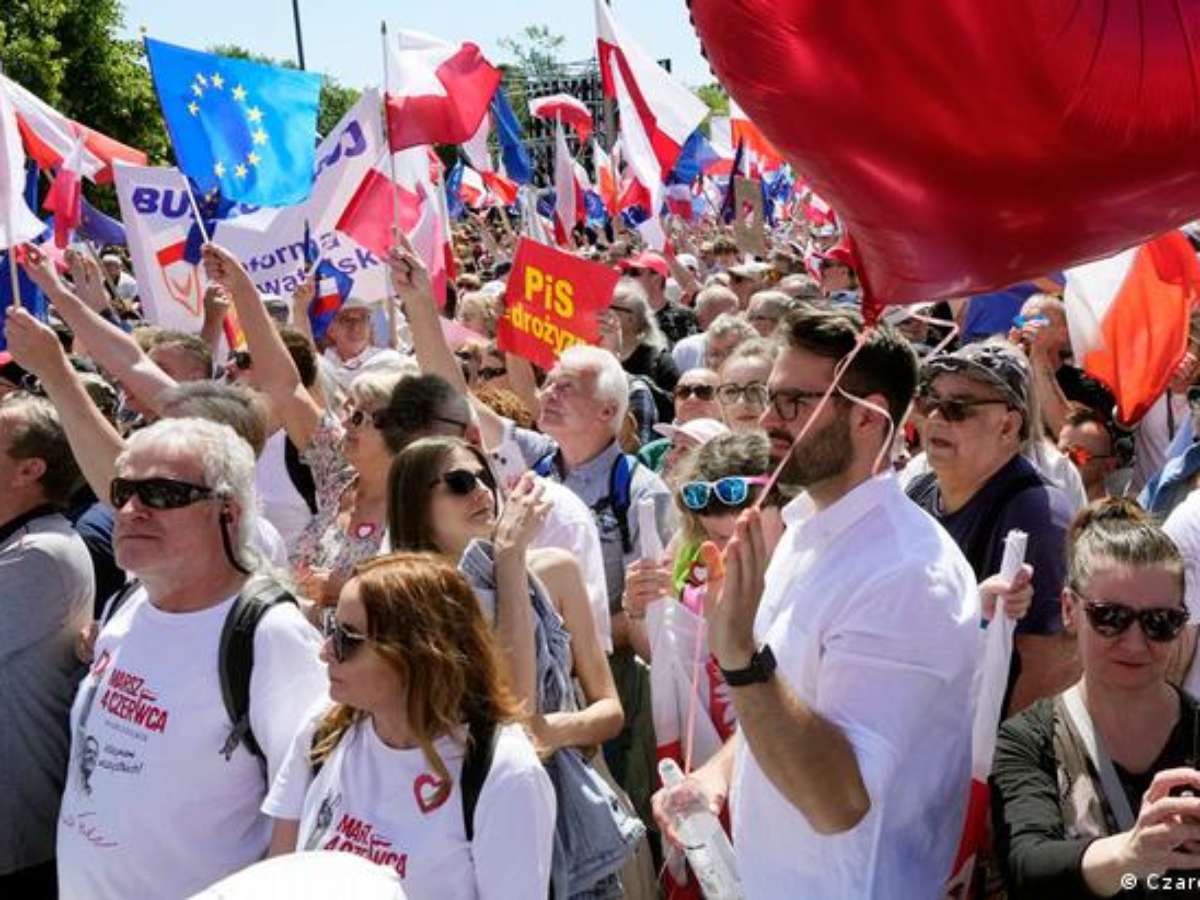 Cerca de 500 mil manifestantes saíram às ruas de Varsóvia neste domingo para protestar contra políticas do ultraconservador partido governista do país, acusado de minar a democracia polonesa.Uma enorme manifestação ocorreu na capital da Polônia neste domingo (04/06), com cidadãos de todo o país viajando a Varsóvia para expressar seu repúdio ao atual governo ultraconservador nacionalista de direita, que é acusado de minar a independência do Judiciário, implementar políticas contra mulheres e minorias, distorcer a história e fazer uso do nacionalismo para sufocar a oposição e lançar críticas à União Europeia.
