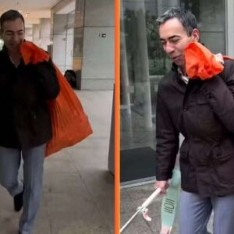 Na sexta-feira (26 de setembro), o jornalista Cesar Tralli apareceu nos estúdios da TV Globo carregando um saco de brinquedos e um patinete.