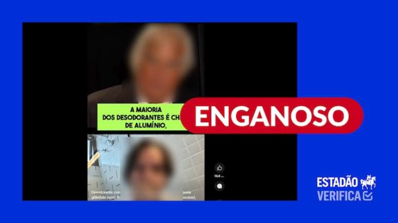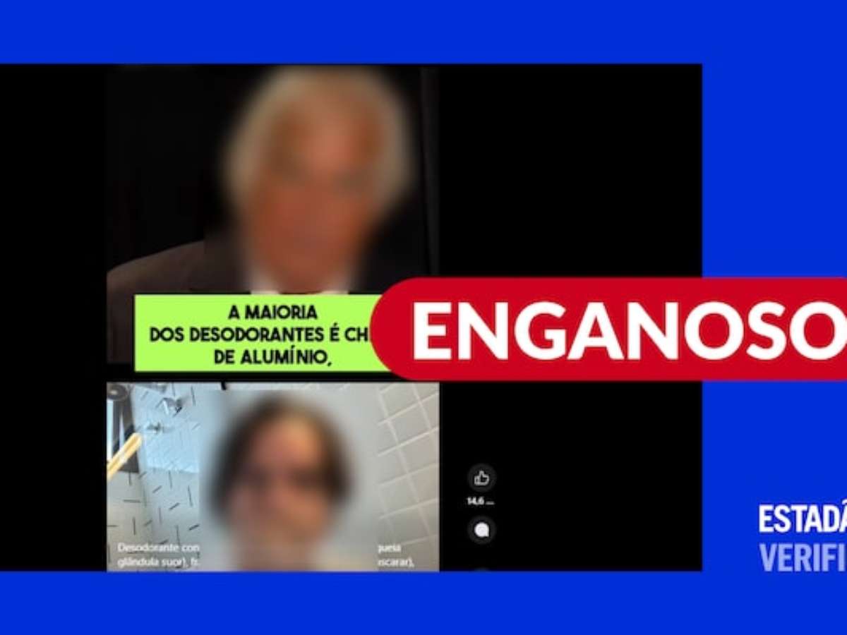 O que estão compartilhando: vídeo em que um homem afirma que a maioria dos desodorantes estão cheios de alumínio e um componente conhecido como BHT (butil-hidroxitolueno), que seria carcinogênico. Eles penetrariam a pele, caindo na corrente sanguínea e causando danos à saúde humana.