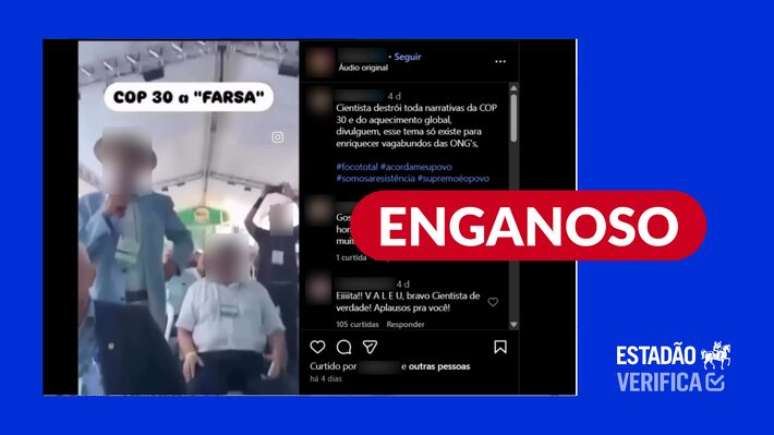Saiba mais: após o início da COP-30 nesta segunda-feira, 10, viralizou um vídeo com declarações atribuídas a um cientista, com a afirmação de que ele teria desmascarado a "farsa" da Cúpula do Clima. A conferência ocorre em Belém, capital do Pará, e é a primeira vez que o evento é sediado em uma cidade amazônica.