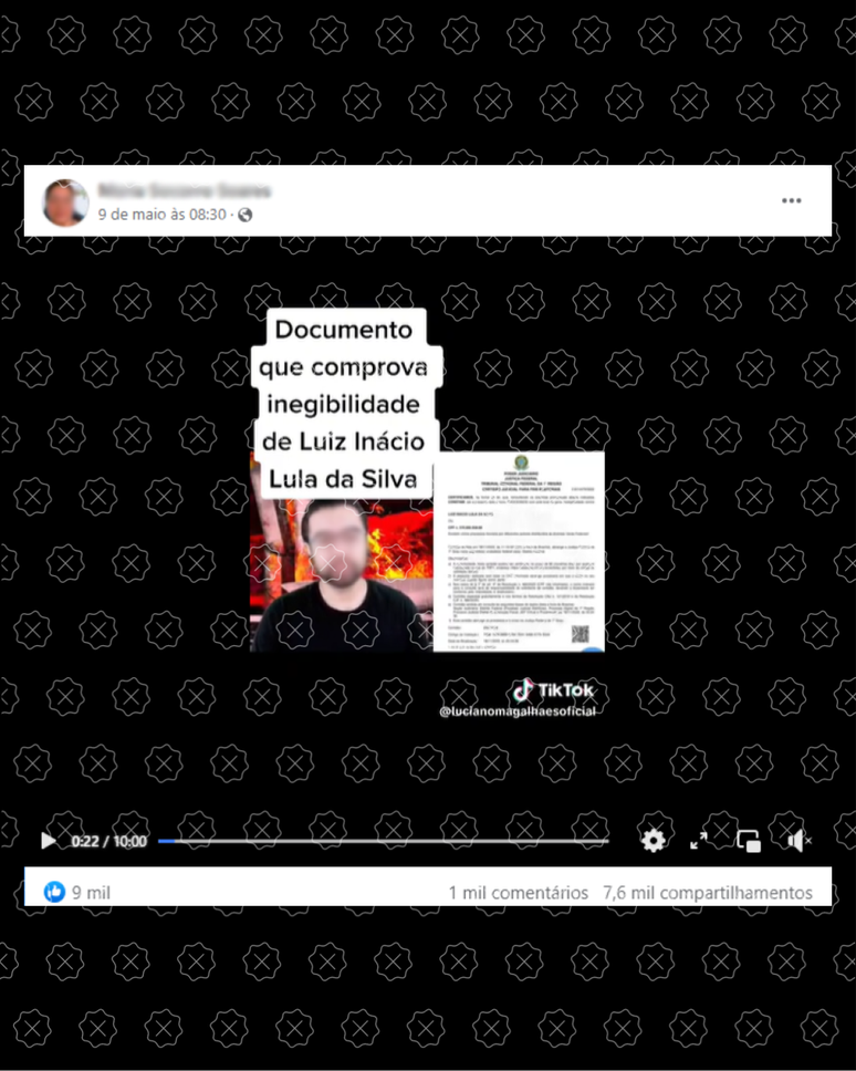 Um vídeo que circula nas redes distorce o conteúdo de uma certidão eleitoral emitida pelo TRF-1 em novembro do ano passado para afirmar que Lula estava inelegível durante o pleito de 2022 e não poderia ter sido escolhido presidente da República. No documento compartilhado pela peça de desinformação, no entanto, o tribunal atesta apenas que havia processos correndo em primeira instância contra o petista que poderiam torná-lo inelegível no futuro, e não que ele estava inapto a disputar o pleito do ano passado.
