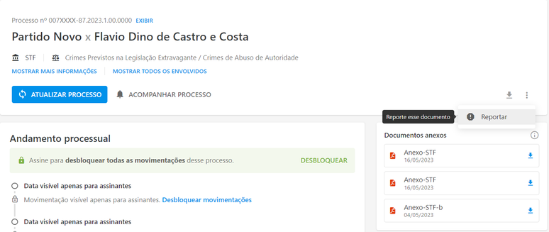 Em março, durante audiência pública na Câmara, o deputado André Fernandes (PL-CE) fez uma acusação infundada contra o ministro da Justiça e Segurança Pública, Flávio Dino (PSB), com base em informações do Jusbrasil, empresa que disponibiliza documentos públicos e vende serviços por assinatura. "O senhor acabou de falar que não responde a nenhum processo e no Jusbrasil diz que o senhor responde a 277 processos", disse o parlamentar.