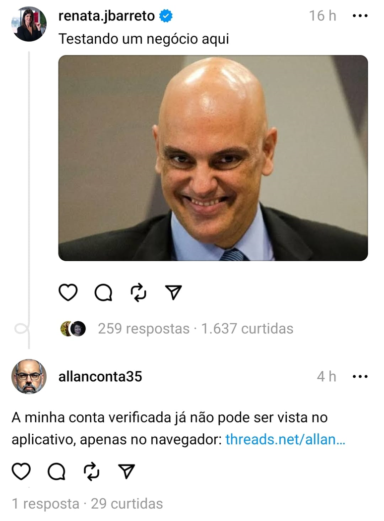 - Allan dos Santos usou o perfil verificado dele no Instagram, @allansantosbr — que está inacessível no Brasil por decisão judicial —, para criar uma conta no Threads;