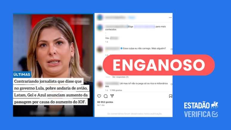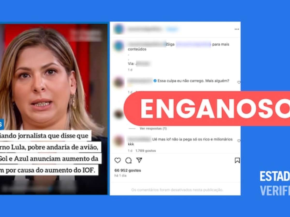 A postagem analisada pelo Verifica também afirma que Latam, Gol e Azul teriam anunciado aumento das passagens por causa da alta do IOF, mas isso não ocorreu até o momento.