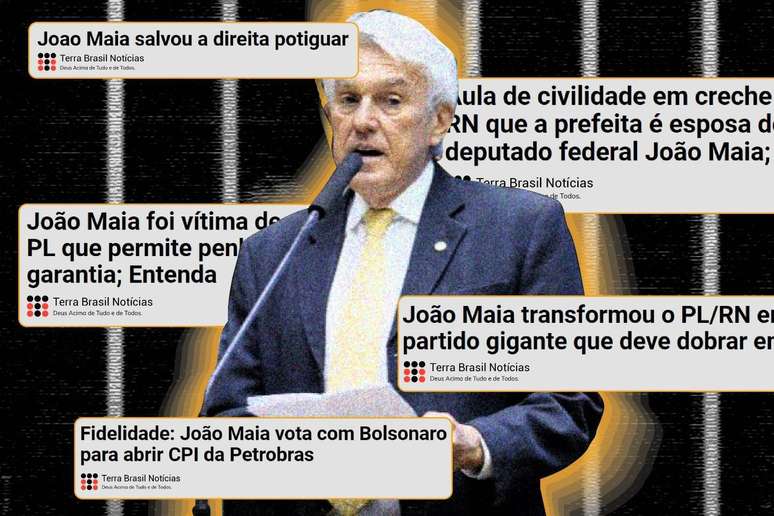 Fidelidade. Colagem mostra deputado João Maia e títulos do Terra Brasil Notícias (Sariana Fernández/Aos Fatos)