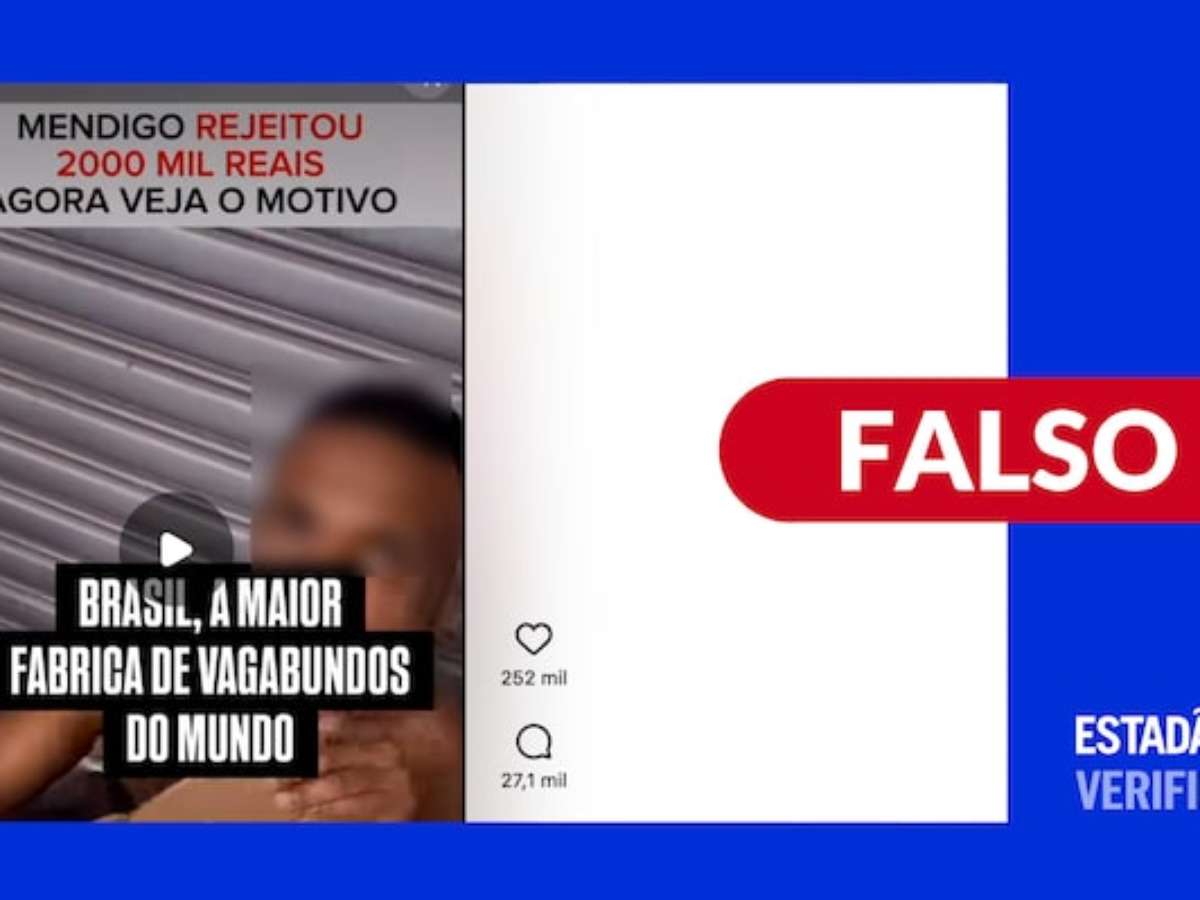 Saiba mais: No vídeo, a pessoa que filma aborda um homem, que atua como se estivesse em situação de rua. O ator pede R$ 5,00 e quem faz a gravação responde fingindo oferecer um emprego com salário de R$ 2 mil. O outro recusa a oferta, afirmando ter medo de perder o auxílio que recebe do governo.