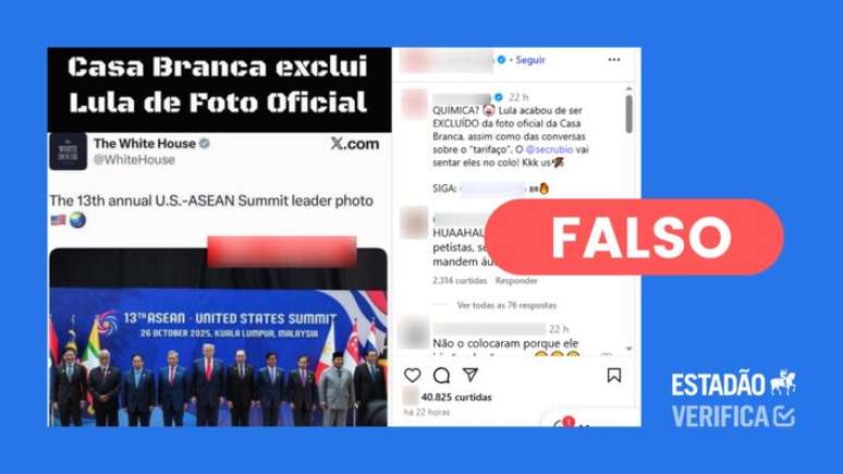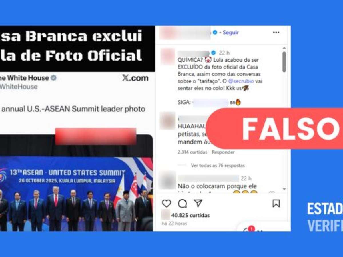 O que estão compartilhando: que a Casa Branca excluiu o presidente Luis Inácio Lula da Silva da foto oficial do presidente americano Donald Trump na 47ª Cúpula de Líderes da Associação de Nações do Sudeste Asiático (Asean), na Malásia.