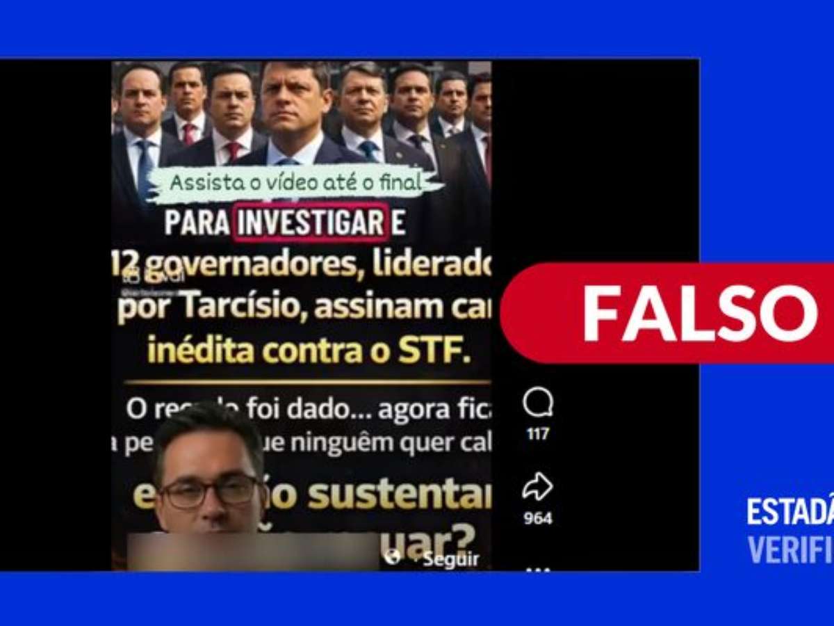 O que estão compartilhando: vídeo afirma que 12 governadores teriam assinado carta conjunta pedindo intervenção do Congresso Nacional no Supremo Tribunal Federal (STF). O documento teria sido articulado pelo governador de São Paulo, Tarcísio de Freitas (Republicanos), e protocolado no Senado, com pedido de afastamento imediato do ministro Alexandre de Moraes.